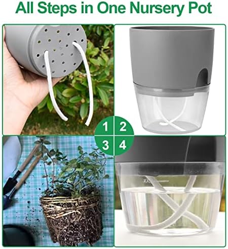 High-quality: The self-watering flower pot and inner basket are made of high-quality plastic, which is heat and cold resistant. The high strength and toughness allow safe and durable use. You can also separate the top and bottom layer to lift it for refilling. The water can be kept for 7–15 days. Don’t worry about the plant drying out when you are away for a few days.