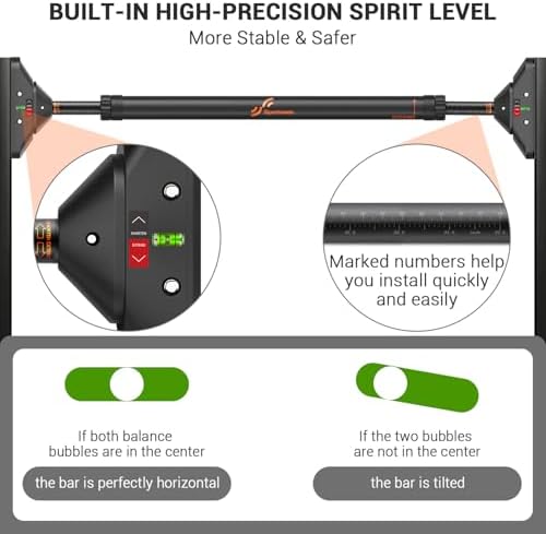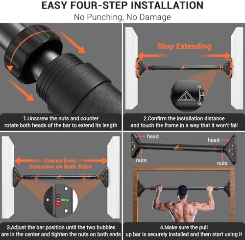 NO DRILLING NO TRACES The pull up bar uses innovative fixing technology to stay in place. It has two large 6.5 x 1.8 inch PVC mats for extra friction and stability. Four metal fixed points connect the base and pole for a secure, drop-proof design even under heavy loads.