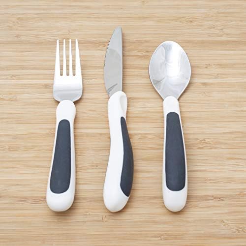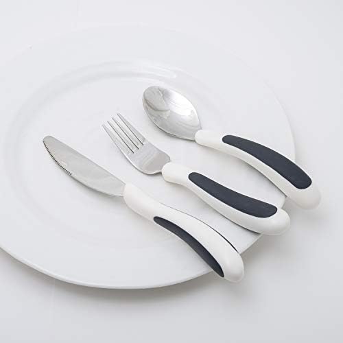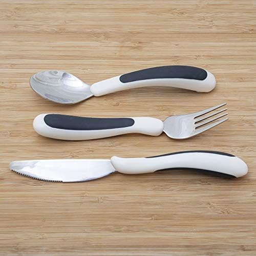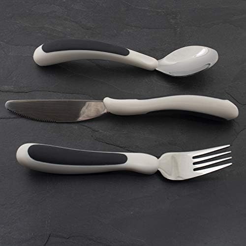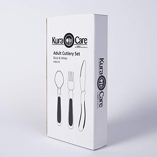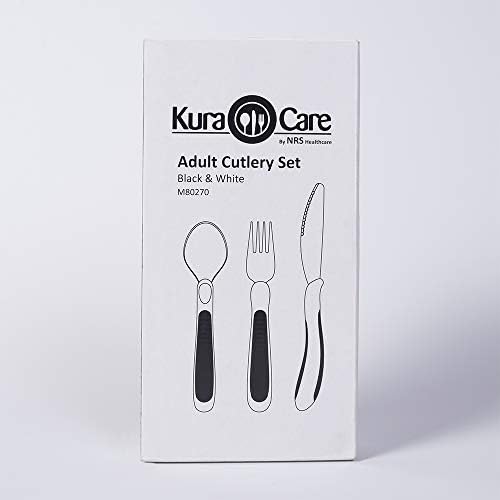 NRS Healthcare M80270 Kura Care ergonomic adult cutlery set includes one each ergonomically designed knife, fork and tablespoon