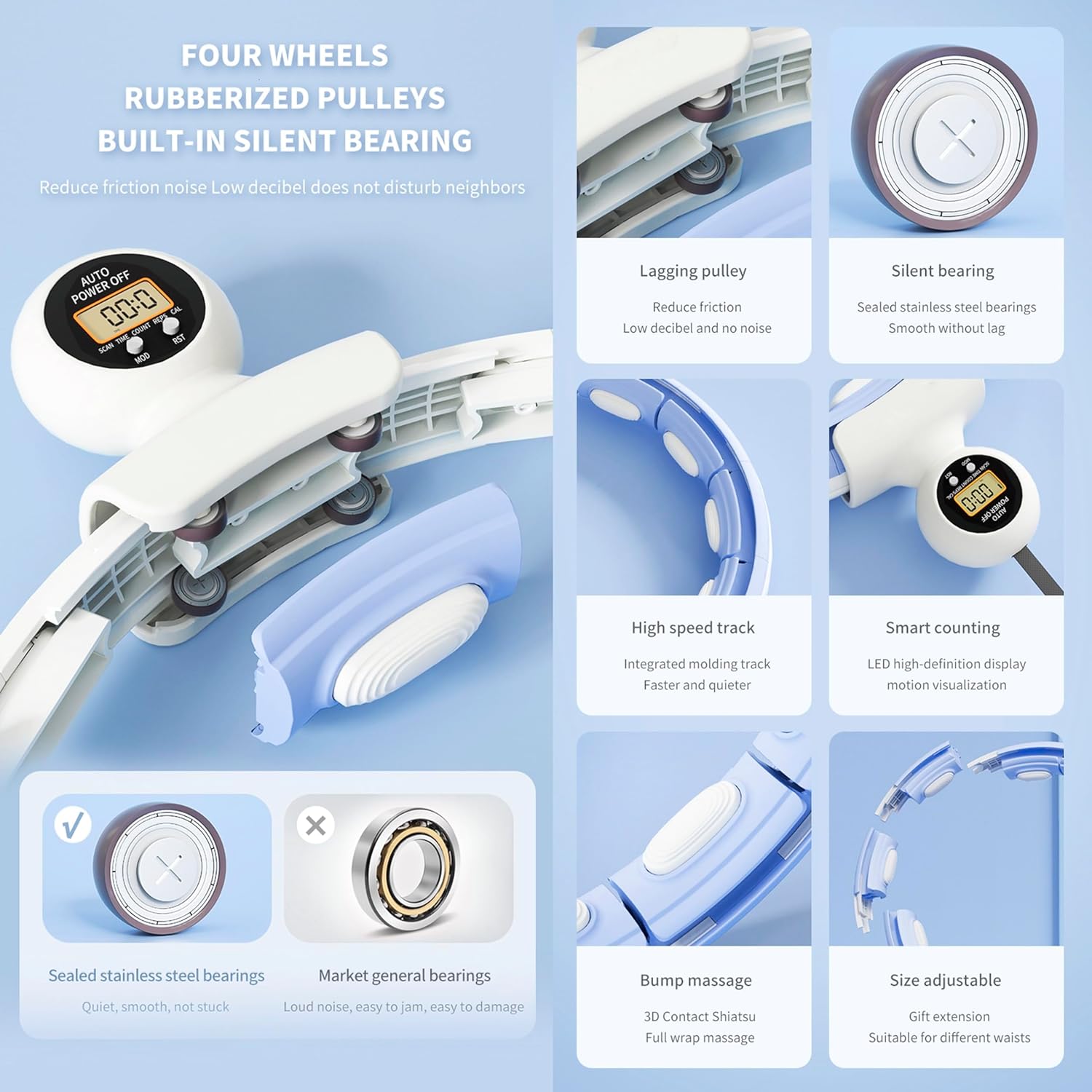 Detachable Design It consists of removable parts, which can be disassembled by pressing a button. You can choose your own hula rings according to your waist circumference. The tyre circle can be adjusted according to the waist circumference. These parts are easy to disassemble and easy to store.