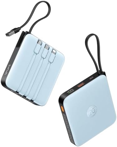 All-in-one charging solution with 4 cables: power bank 20000 mAh with integrated cable (USB-C/compatible Lightning/USB-A/Micro USB) – charges up to 4 devices at the same time without accessories. Compatible with iPhone 16/15/14, Samsung Galaxy, Huawei, iPad and much more.
