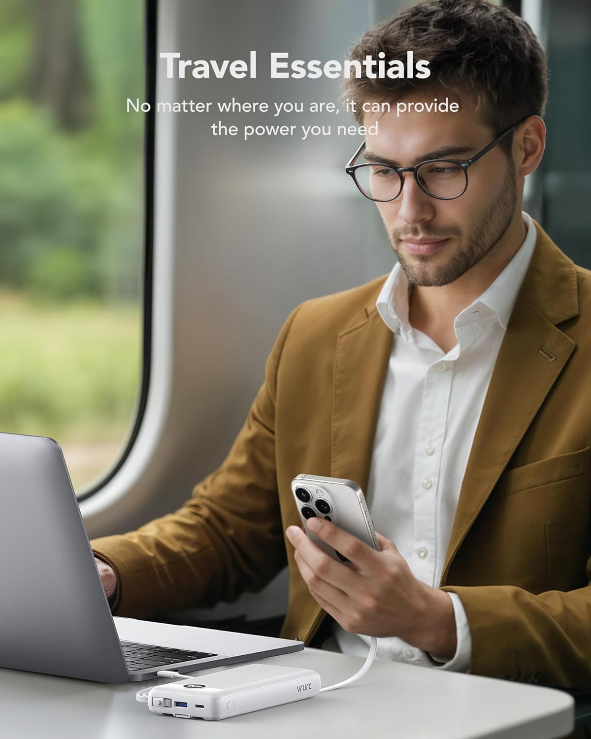 4 built-in charging cables: the VRURC 20000 mAh power bank with the integrated USB-A cables, other cables (compatible with iPhone), USB C and micro USB cables, no additional cable required. It has good flexibility, is extremely durable and easy to connect