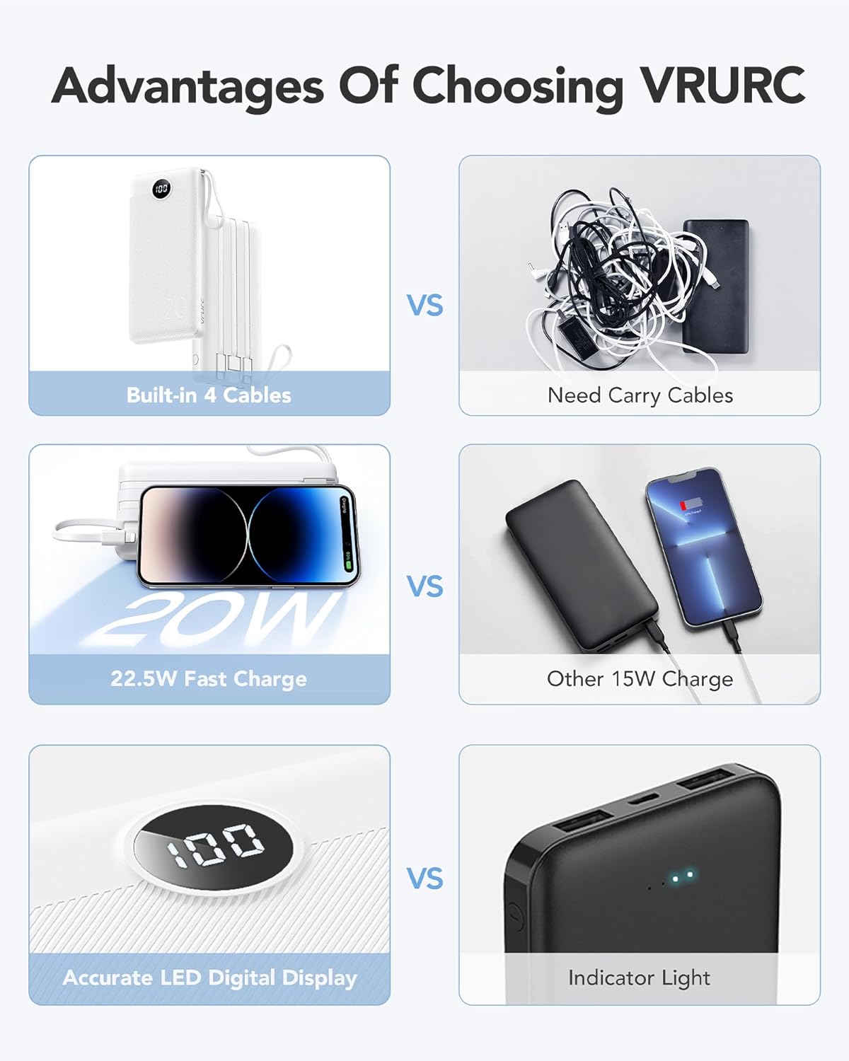 VRURC Powerbank 20000 mAh with Cable USB C Power B…