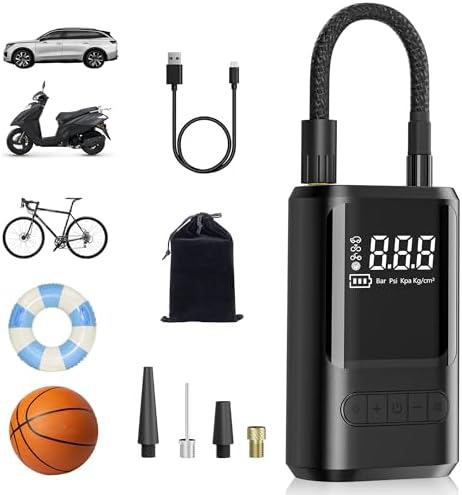 Larger battery capacity and longer service life: the portable compressor with 6000 mAh battery allows this pump to inflate 8 car tyres, 15 motorcycles, 20 bicycle tyres and 50 balls. This bicycle pump for car is suitable for bicycles, motorcycle, small vehicles, various balls.